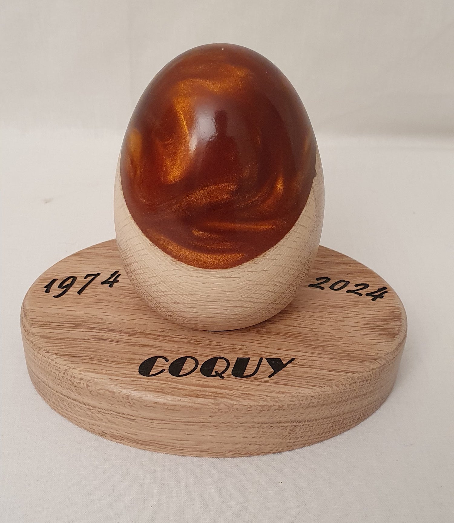 Réalisation de 80 pièces comme celle-ci pour les 50 ans de la célèbre marque d'oeufs Francs-Comtois "COQUY".