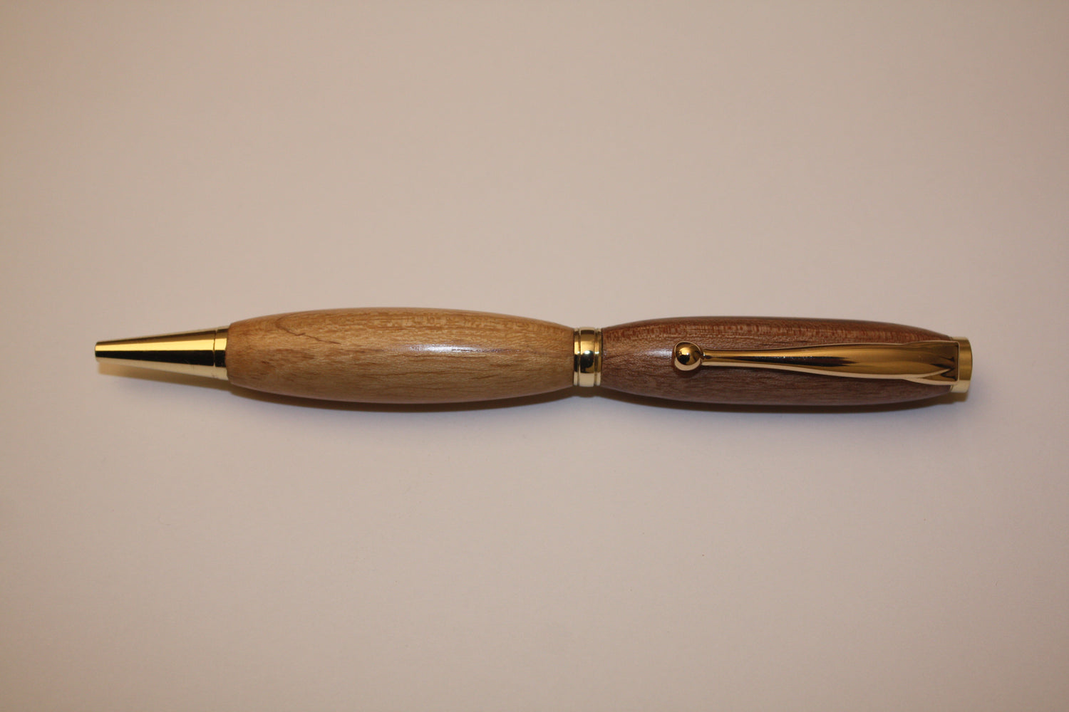 Stylo bille en acacia et noyer, avec mécanisme doré.