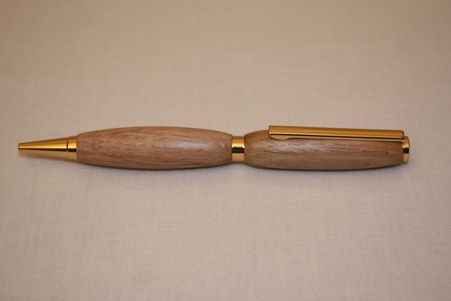 Stylo bille en chêne avec mécanisme en plaquage or 24K.