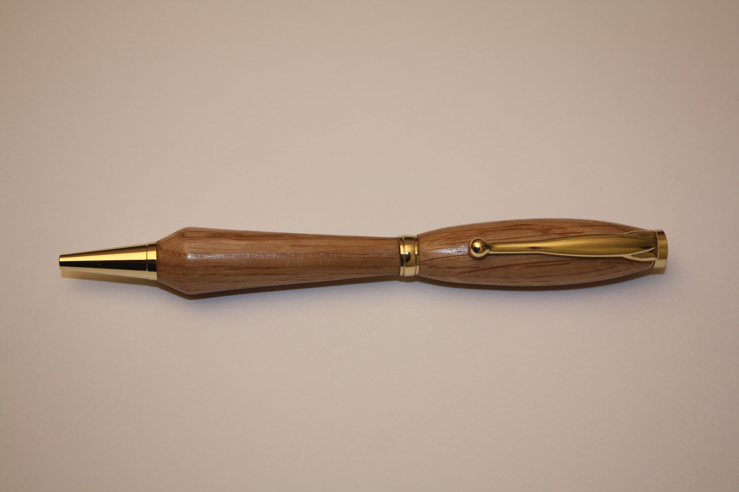 Stylo bille en chêne avec mécanisme en plaquage or 24K.