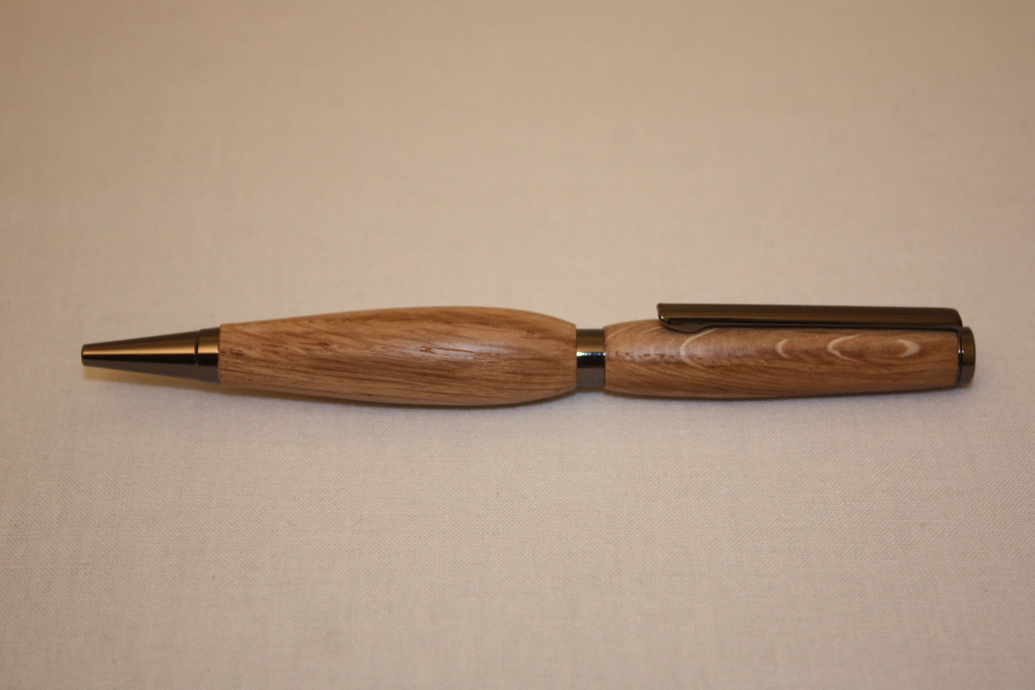 Stylo bille en chêne avec mécanisme gris.