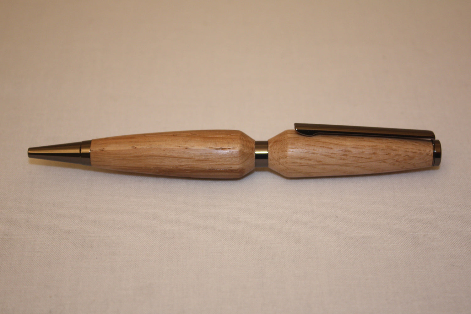 Stylo bille en chêne avec mécanisme gris.